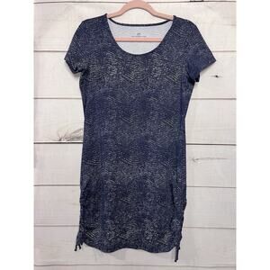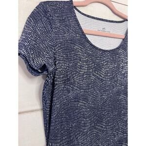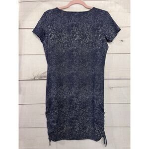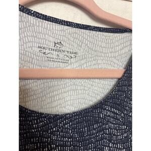 The Southern Tide Size Small Dress is a stylish and versatile option for women looking for a fun and comfortable outfit. Made from a stretchy nylon blend, this short sleeve dress features a geometric blue pattern with a scoop neckline and ruched details, giving it a unique and chic look. Ideal for occasions like summer parties, casual outings, or even travel, this shift dress embodies a beachy, nautical theme that is perfect for the warmer seasons. The regular fit and small size make it a flattering and easy-to-wear choice for any fashion-forward woman.