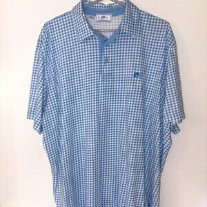 Southern Tide Skipjack Sky Blue White Houndstooth Gingham Polo Short Sleeve XL