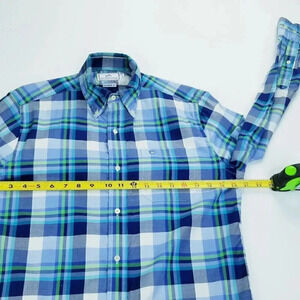 Southern Tide Small Classic Fit Men's Embroidered Pocket Logo Blue Plaid Cotton
