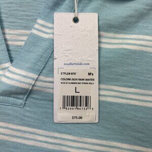 Southern Tide Summer Ray Stripe Polo Shirt Men's Size Large Rain Water Blue NWT
