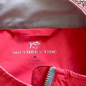 Stay stylish and protected with this Southern Tide T3 Tide To Trail Cabana Admiral Windbreaker Pullover. Designed for comfort and functionality, this 1/4 zip pullover is perfect for outdoor adventures or casual wear. The vibrant coral color adds a bold touch to your look while the lightweight material ensures comfort throughout the day.