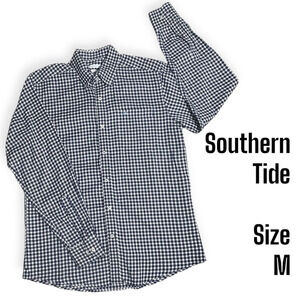 Southern Tide Tailored Fit navy white gingham Button Down Shirt size Medium