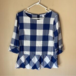 Southern Tide Women’s Jillian Navy Check Peplum Top