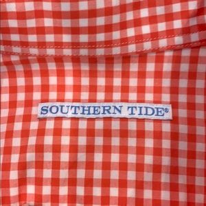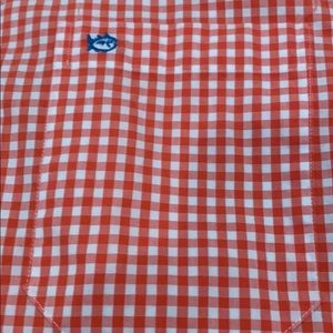 Southern Tide men’s button down in gingham orange pattern, in like new condition