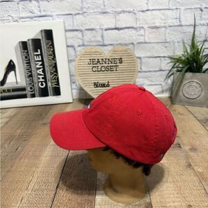This hat appears darker in some photos but is more of a bright red as shown in side view photos