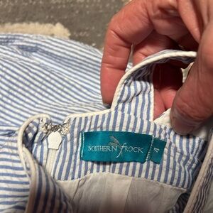 Southern frock sear sucker dress. Size 4. Blue and white. Dressy or casual. Excellent condition lined.