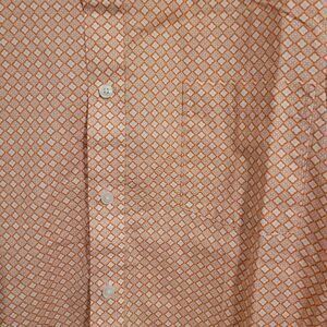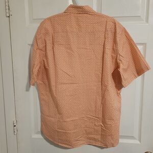 Super nice shirt. Has a vintage vibe to it. Not sure if it is or not. More of a coral color. All cotton material. Tag says size XL. Excellent pre-owned condition. No flaws