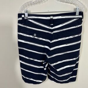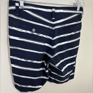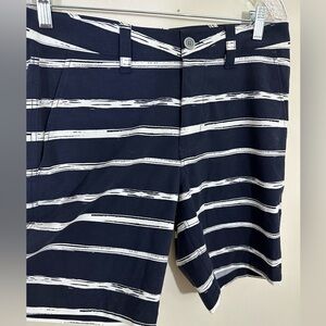 Super nice shorts in a navy with small flecks and white. The short have mesh pockets so if you wore them in the water , your items in the pockets would remain in the mesh pockets. The waist is a 32”. Ant questions please ask No visible flaws. Great pair of shorts