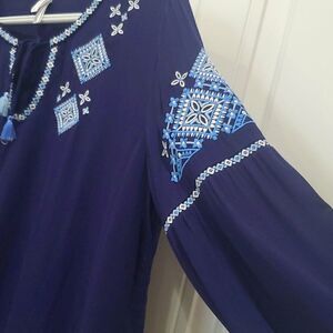 Southern Tide Womans Boho Embroidered Navy Blue Blouse , Size Large , Perfect condition, lightweight, Measurements are