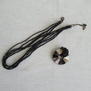Boho, Southwestern Style, Natural Mother Of Pearl, Abalone and glass beads Necklace with Removable Disc Pendant - Signed Coldwater Creek