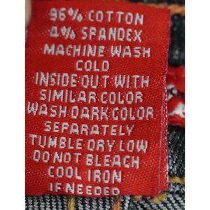 Other: Green and pink embroidery on back pockets. Traditional 5 pocket design. Zipper & button closure. Straight leg.