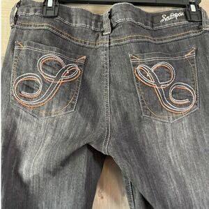 Southpole Jeans Straight Leg Embroidered Back Pockets Black Y2K Juniors Size 9