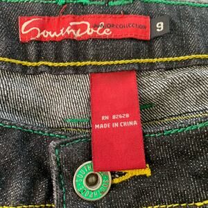 Southpole Jeans Womens 9 (30x32.5) Blue Mid Rise Flared Embroidered Dark Denim