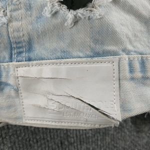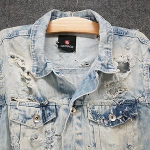 Southpole Men's Distressed Denim Jacket Blue M Button Front Acid Wash