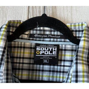 Southpole Mens Plaid Button-Up Short Sleeve Shirt XL Black/Yellow/White/Grey EUC