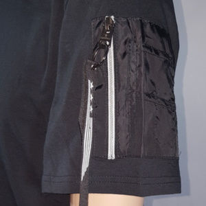 Southpole Men's Nylon Trim Long Scallope Tee T-Shirt w/ Shoulder Zipper Pocket
