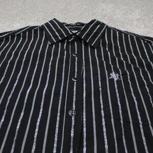 Southpole Premium Shirt Men XL Black/Silver Stripe Pearl Snap Long Sleeve Button