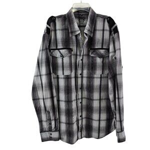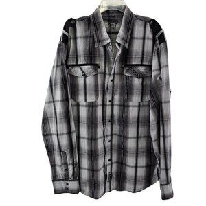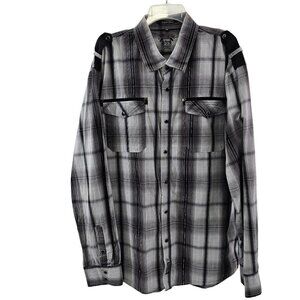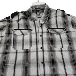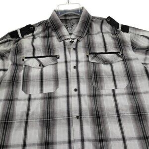 Men’s Southpole Premium Size 4XL – Gray and Black Stripe Cowboy Shirt