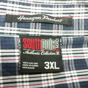 Southpole Mens Shirt Size 3XL Plaid Blue Button Authentic Collection Runs Small