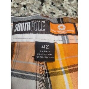 Southpole Shorts Mens 42 Orange Yellow Plaid Casual Cotton Blend Flat Front