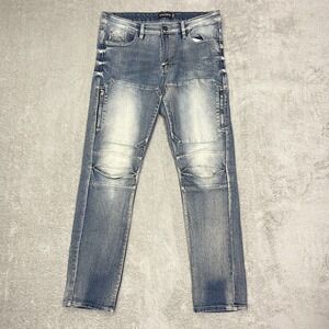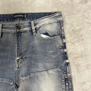 Southpole Skinny Jeans Pants 34 Light Acid Wash Biker Double Knee Moto