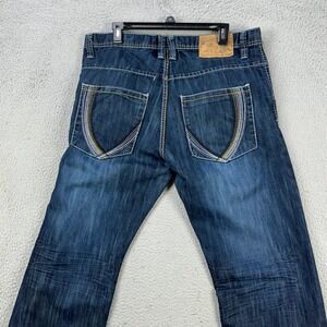 Southpole Y2K Mens Baggy Straight Jeans 38 Blue Distressed 5 Pockets Denim Pants