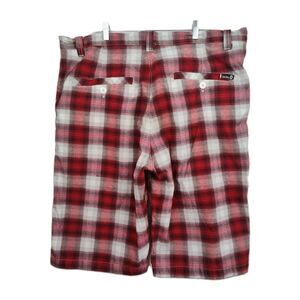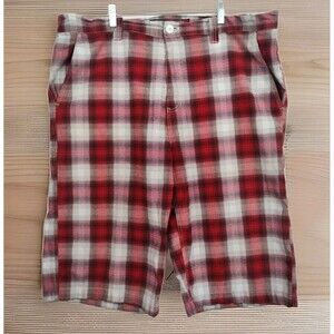 Southpole chino shorts, men's size 42, red/white/black plaid pattern
