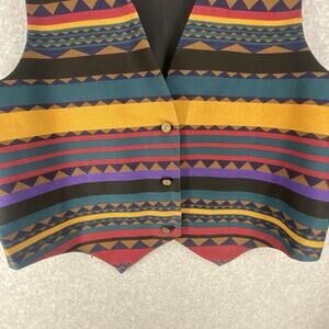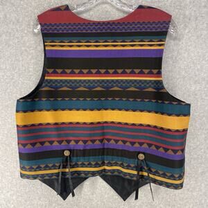 Southwest Aztec Navajo Print Short Vest Concho Metal Buttons Womens Size L