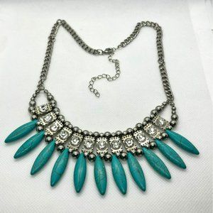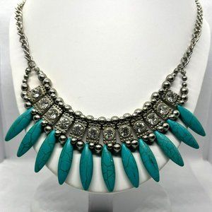 Southwest Faux Turquoise Rhinestone Silver Tone Collar Bib Women's Necklce