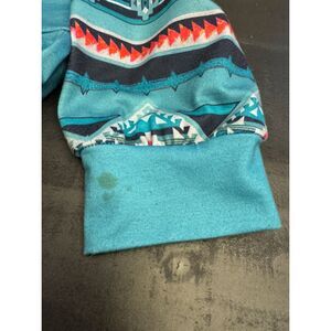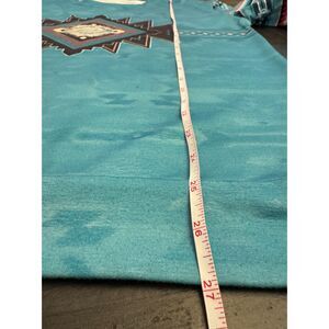 Gorgeous colors on this. Southwest, Native American, western design. See pics for measurements. Last pic shows small mark on the back of one of the cuffs. Otherwise, great condition. Size Large.