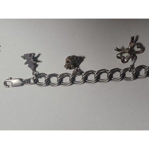 Southwest Native Turquoise Charm Bracelet Sterling Silver
