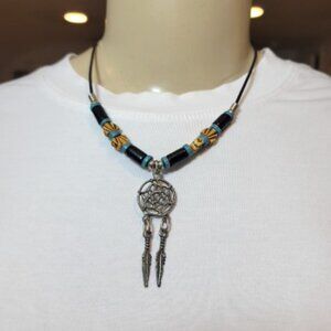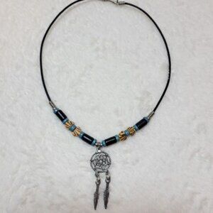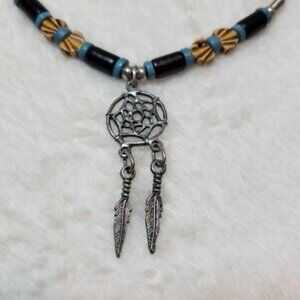 Southwest Polymer Clay Y2K Dream Catcher Necklace w/ Feathers on Black Cord Bead