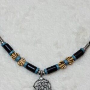 Southwest Polymer Clay Y2K Dream Catcher Necklace w/ Feathers on Black Cord Beads Turquoise