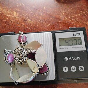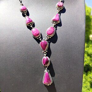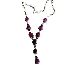 Southwest Purple Spiny Oyster Shell Sterling Silver Lariat Necklace Adjustable