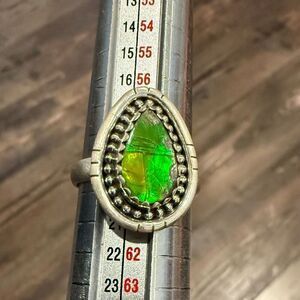 Elevate your style with this exquisite Southwest Rare Ammolite Sterling Silver Adjustable Ring.
