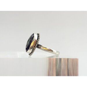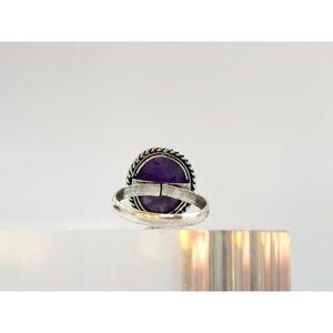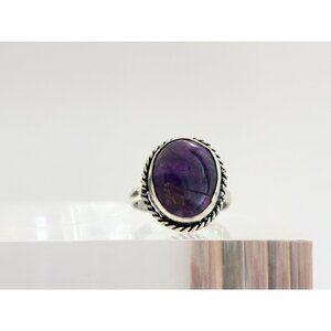 Southwest Style Amethyst Adorned 925 Sterling Silver Vintage Ring - sz 9.5