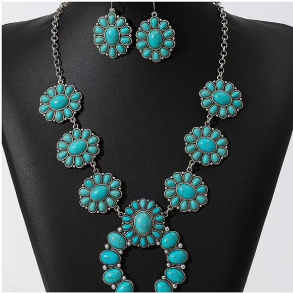 Southwest Style Squash Blossom Imitation Turquoise Statement Necklace