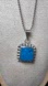 This exquisite necklace showcases a vibrant turquoise blue stone set in a decorative silver frame, capturing the essence of Southwest style. The pendant is elegantly suspended from a sleek silver chain, making it a timeless piece for any jewelry collection.