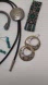 ring size 8 3/4, 2 bracelets and faux turquoise earrings unmarked