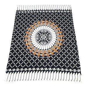 Southwest woven Black & White Tribal Throw Blanket Geometric Design Fringe Edges