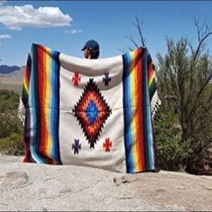 This gorgeous Southwestern blanket 5'x7' Heavy Weight, Hand-Woven with vibrant colors.