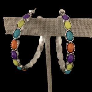 Southwest Style Hoop Earrings – Colorful Cabochons in Hopi Zuni Navajo Tones