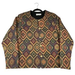 Southwestern Aztec Vintage Tapestry Boho Tribal Concho Button -Up Jacket - Sz L