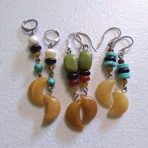 Southwestern & Boho Vibes! Long Moon Danglers! Aventurine Howlite + Agate Beads