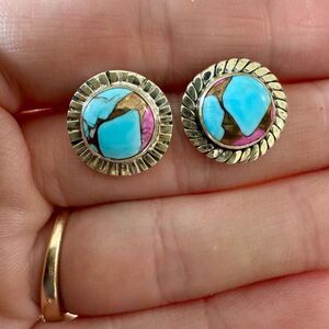 Southwestern Cotton Candy Turquoise Round Stud Earrings Sterling Silver New