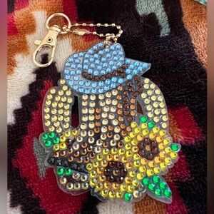 ❤️ Southwestern Diamond Art Cowboy Boot Sunflower Keychain or Purse Charm