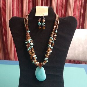 Southwestern Faux Turquoise Pendant Multiple Strands Turquoise Chips & Beads
