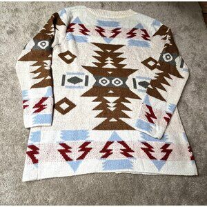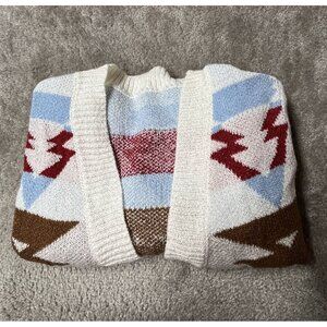 Southwestern Geometric Pattern open Cardigan Sweater Size L Boho Western