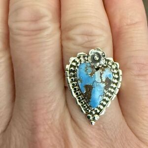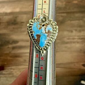 Southwestern Golden Hills Turquoise Sterling Silver Ring Heart Floral Framed