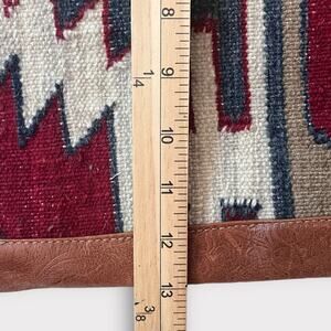 Southwestern Kelim Saddle Blanket Woven Tote Bag Purse Tooled Leather Trim